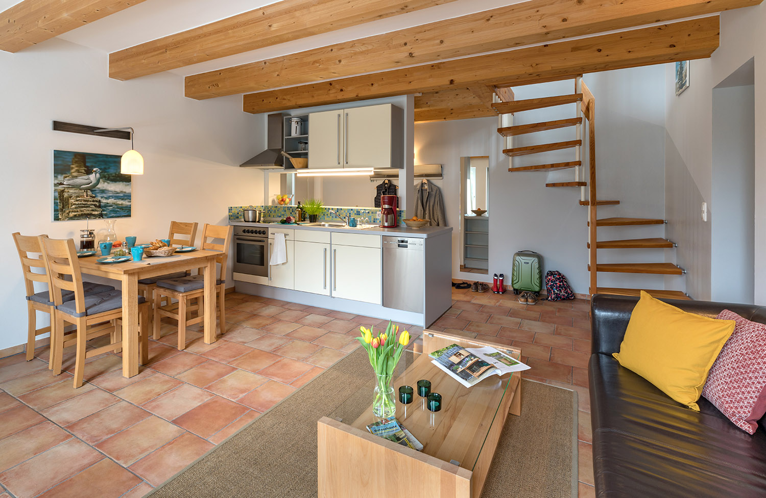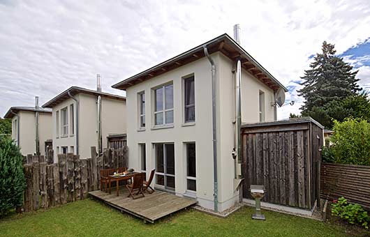 Das Ferienhaus ( letzte Komplettrenovierung 02 / 2018 ) mit einer Größe von 64 qm bietet Platz für 3-4 Personen, ist hell und freundlich, sehr komfortabel und geschmackvoll ausgestattet. Es verfügt über einen Kaminofen und eine Sauna. Das Nichtraucherhaus ist das hintere von drei in Reihe stehenden, baugleichen Ferienhäusern und ist über einen eigenen Eingang erreichbar. Es hat eine eigene, nicht einsehbare Terrasse. Zum Haus gehört ein Stellplatz. Für weitere PKW stehen öffentliche Verkehrsflächen zur Verfügung.